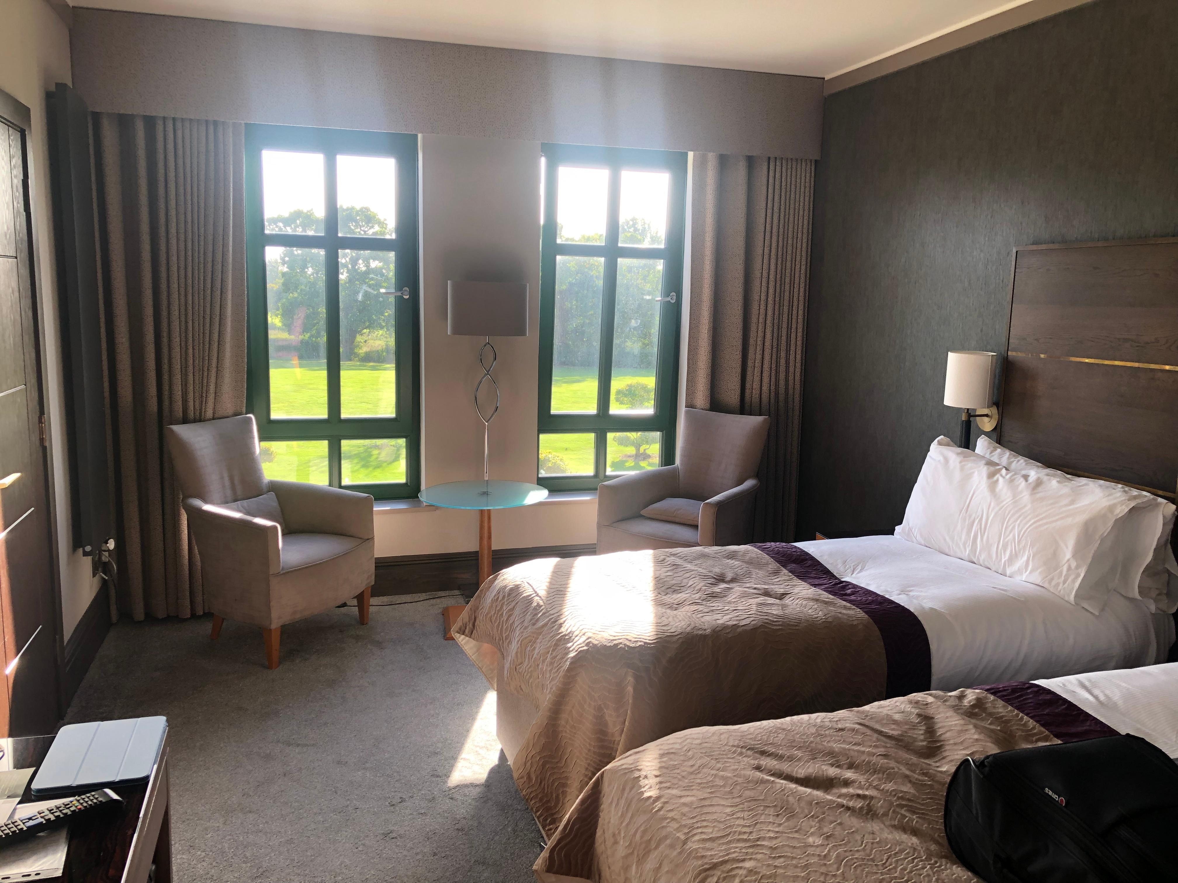 Hotel beautiful. Very comfortable room. Staff amazing professional and welcoming. Lovely food. Beautiful grounds. Great bar from " The Greatest Showman"