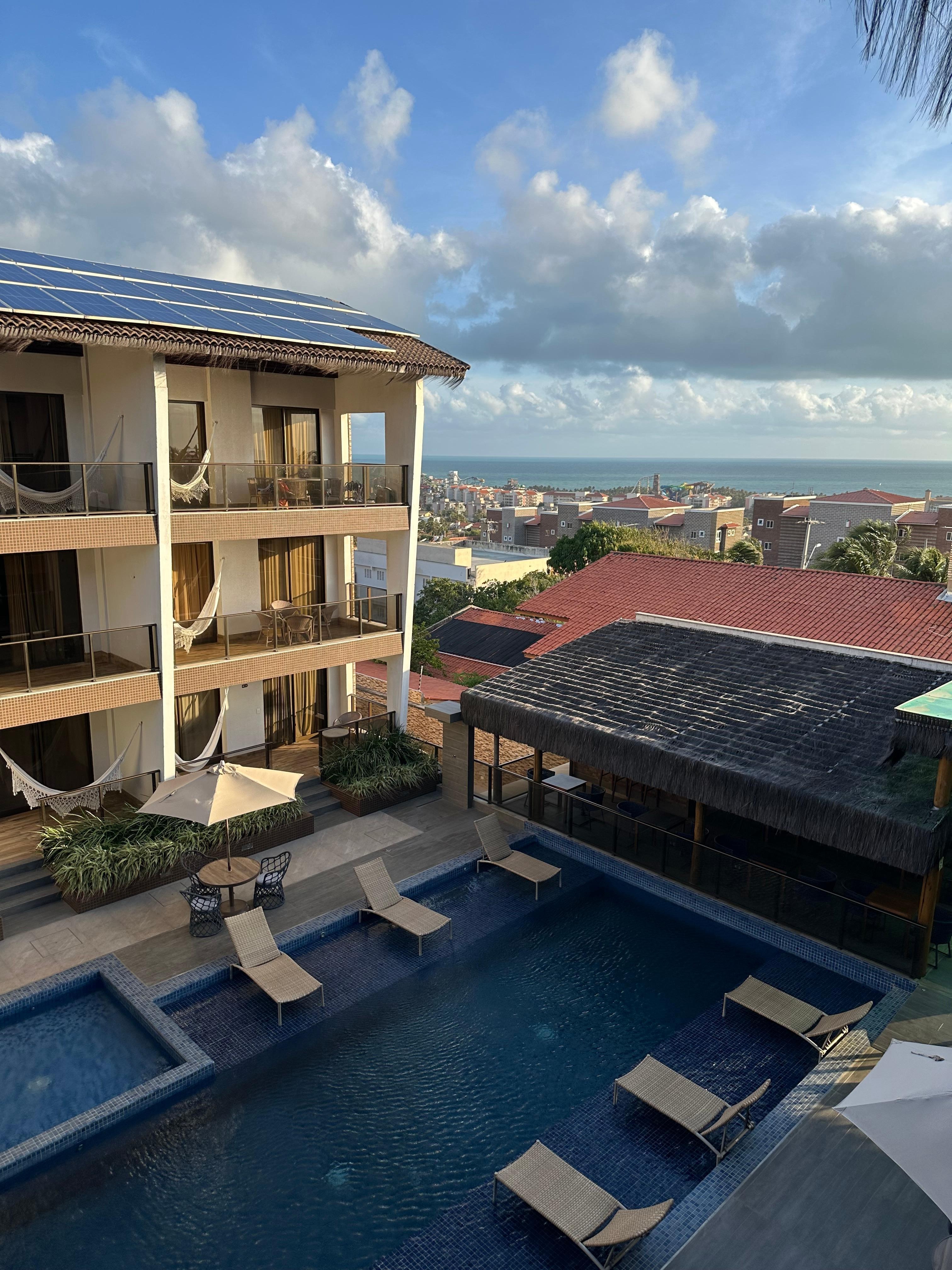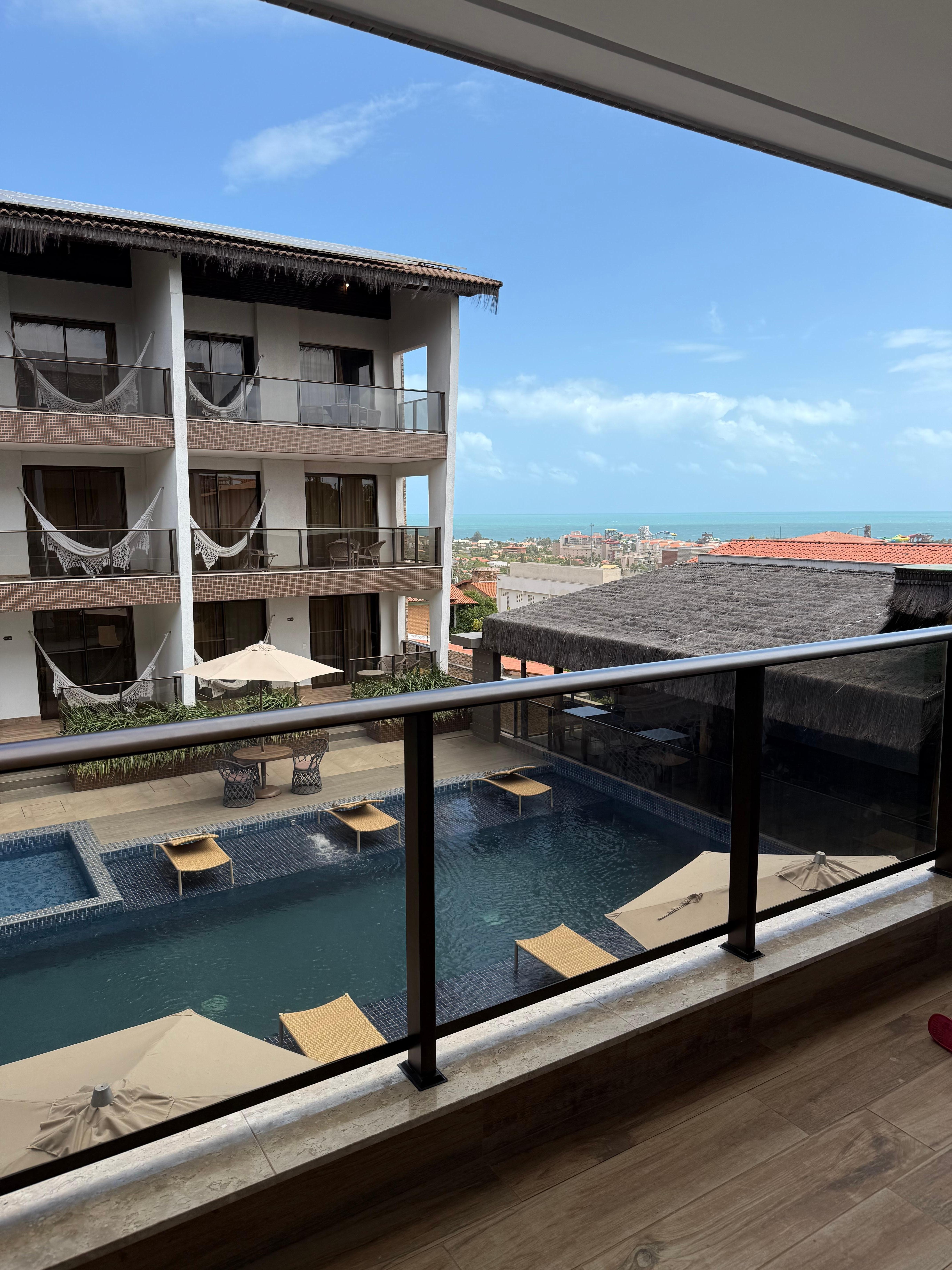 Nice hotel. Rooms are beautiful, however you can hear whats above / below or next to you - just hope you dont get a screaming child. This child also screamed most of the time in pool and as its a courtyard it just echoed. I dont think this hotel is built for children. The aircon also made a huge noise (played the recording for them) I couldnt sleep first night. Moving me downstairs was better. Its a 40min drive to Fortaleza town but more convenient for Beach Park. Dining options arent great. Breakfast at the hotel is basic.