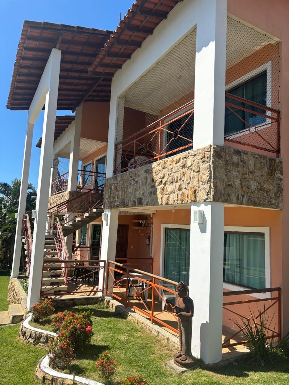 Ficamos eu e meu esposo o prazo de duas diárias e o local foi é razoável, uma decoração maravilhosa, quarto amplo, o quarto e banheiro limpos, tv sky, ar condicionado, frigobar, cama muito boa. Mas os pontos fracos não tem como voltar nela, o local é muito afastado de tudo, difícil para Uber aceitar e por isso fica isolado, tem uma taxa por pessoa de 10 reais pra pagar pra uso da churrasqueira de 10 reais que não entendi o pra que cobram, pois as churrasqueiras (as três disponíveis) estavam sujas, não tem espaço de criança, e por último a maior decepção foi o café, 3 tipos de bolos doces, pão, queijo e presunto, 3 tipos de frutas, pão de queijo e salgadinho, café, suco e iogurte, péssimo, as coisas geladas, nada fresco, bolos tirados da geladeira (com certeza). O atendimento foi bom mas tem muito o que melhorar em hospedagem. NÃO RECOMENDO.